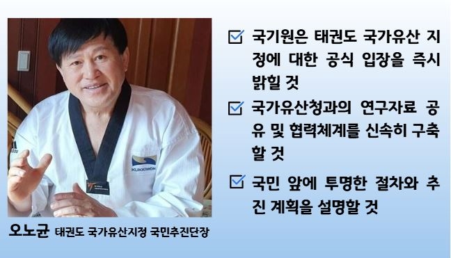 -국기원은 태권도 국가유산 지정에 대한 공식 입장을 즉시 밝힐 것.
