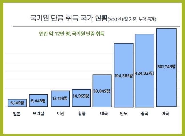 국기원 단증 취득 국가 현황92024년 6월 기준). 자료=국기원 국제사업국