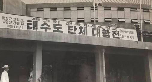 1965년 5월, 대한태수도협회가 장충체육관에서 주최한 제3회 전국 中·高·大학교 태수도 단체대항전’. 대한체육회가 후원했다. (사진 출처:김병수 사범)