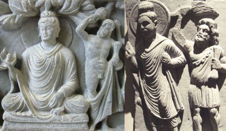 기원전 1세기 인도 서북부 간다라 불교미술 조각상. 부처(붓다)를 옆에서 지키고 있는 헤라클레스