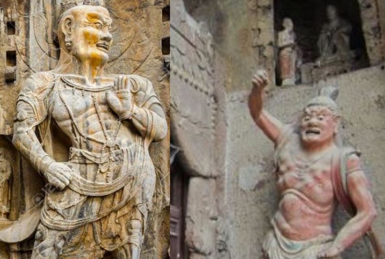 중국 낙양 용문석굴 금강역사상(왼쪽)와 맥적산석굴 금강역사상