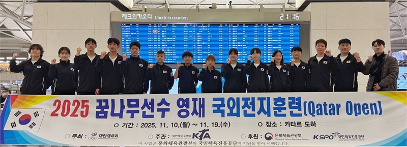 꿈나무 선수들이 지난 10일 카타르 도하로 국외 전지훈련을 떠나고 있다.
