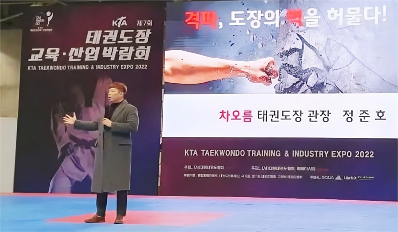 지난 7월 12일, KTA가 주최한 ‘2025 춘천 KTA 태권도장 교육·산업박람회’에서 정 강사는 현재 위력격파의 문제점과 미래의 가능성에 대해 강하게 호소했다. 위력격파 분야는 아직 그 존재감이 미미하지만 위력격파의 발전을 위해서는 기술을 넘어서, 태권도인 모두의 관심과 의지가 필요하다는 소신을 밝혔다.